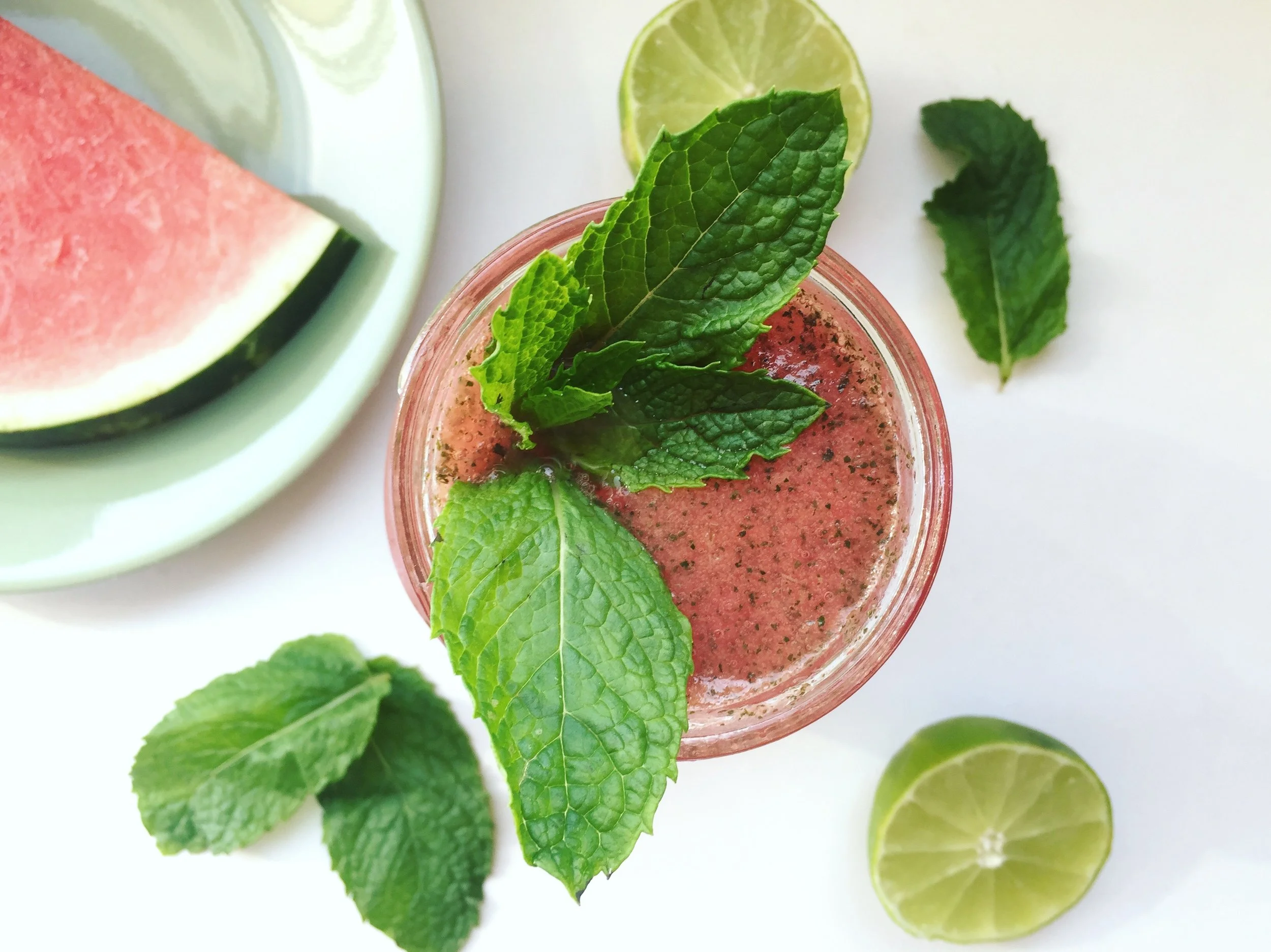 - Scoop all the watermelon into a blender and add the mint and squeeze of lime juice. Puree until smooth and a bit frothy, it will make about 3 cups of liquid.